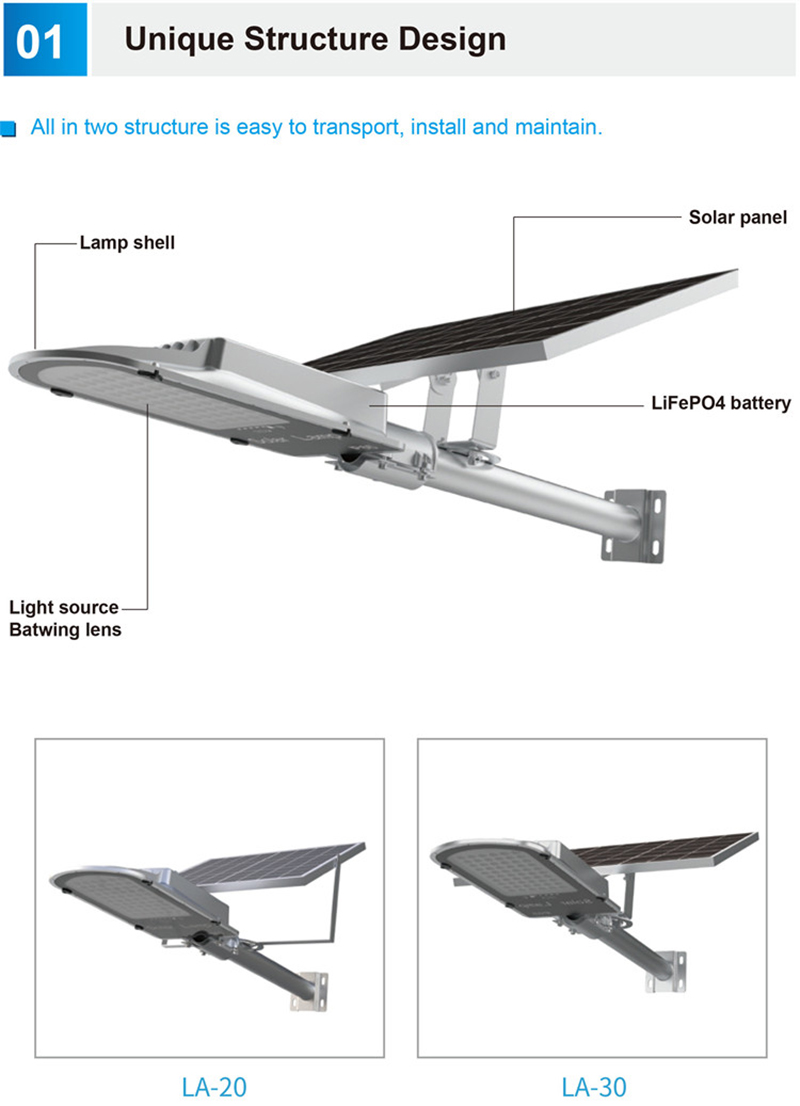 Luz LED solar semi independiente, luz de calle solar.